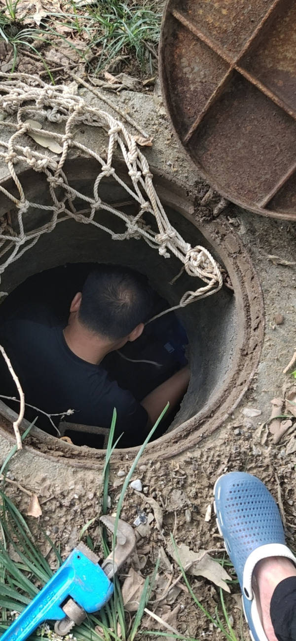 8月7日一早,孟隊(duì)帶領(lǐng)搶修隊(duì)員、檢漏隊(duì)員進(jìn)入福寧小區(qū)。第一步確定有無明漏,先檢查用戶水表,排查結(jié)束未發(fā)現(xiàn)漏水。第二步打開小區(qū)所有井蓋逐一排查,發(fā)現(xiàn)有流水的窨井,搶修隊(duì)員下到井室取水樣,分析、檢測、區(qū)別、排查,一個(gè)不是再到下一個(gè)井室,從早上排查到晚上,排查二十幾個(gè)后,終于在福寧小區(qū)8號樓前井室測試是自來水,至此確定附近有暗漏,這時(shí)指針已經(jīng)是22:47分。第三步檢漏隊(duì)員使用專用“武器”。8月8日00:10分,精準(zhǔn)定位暗漏點(diǎn)位置,確定該管線是de110PE管漏水。為了不打擾居民夜間休息,定于8月8日8:30分施工。施工隊(duì)按照搶修方案快速有序、高效完成搶修任務(wù),于15:02分一次送水成功,福寧小區(qū)壓力恢復(fù)正常。