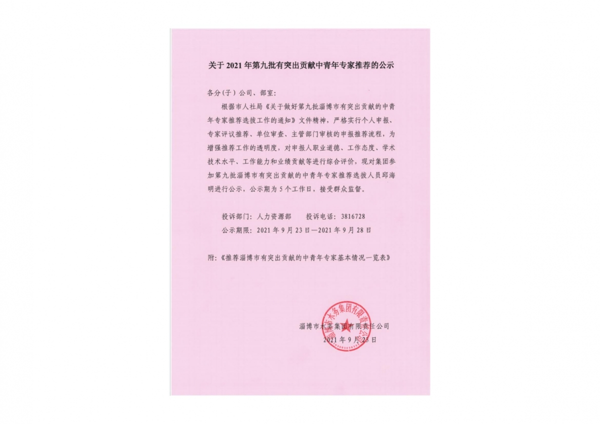 關(guān)于2021年第九批有突出貢獻(xiàn)中青年專家推薦的公示
