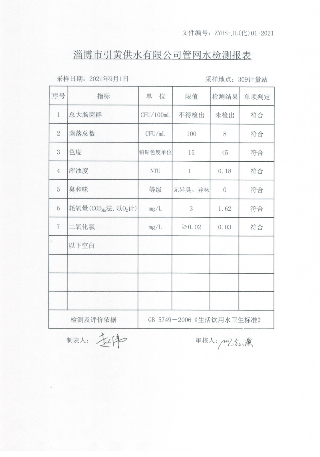 2021年9月水質(zhì)月檢公示