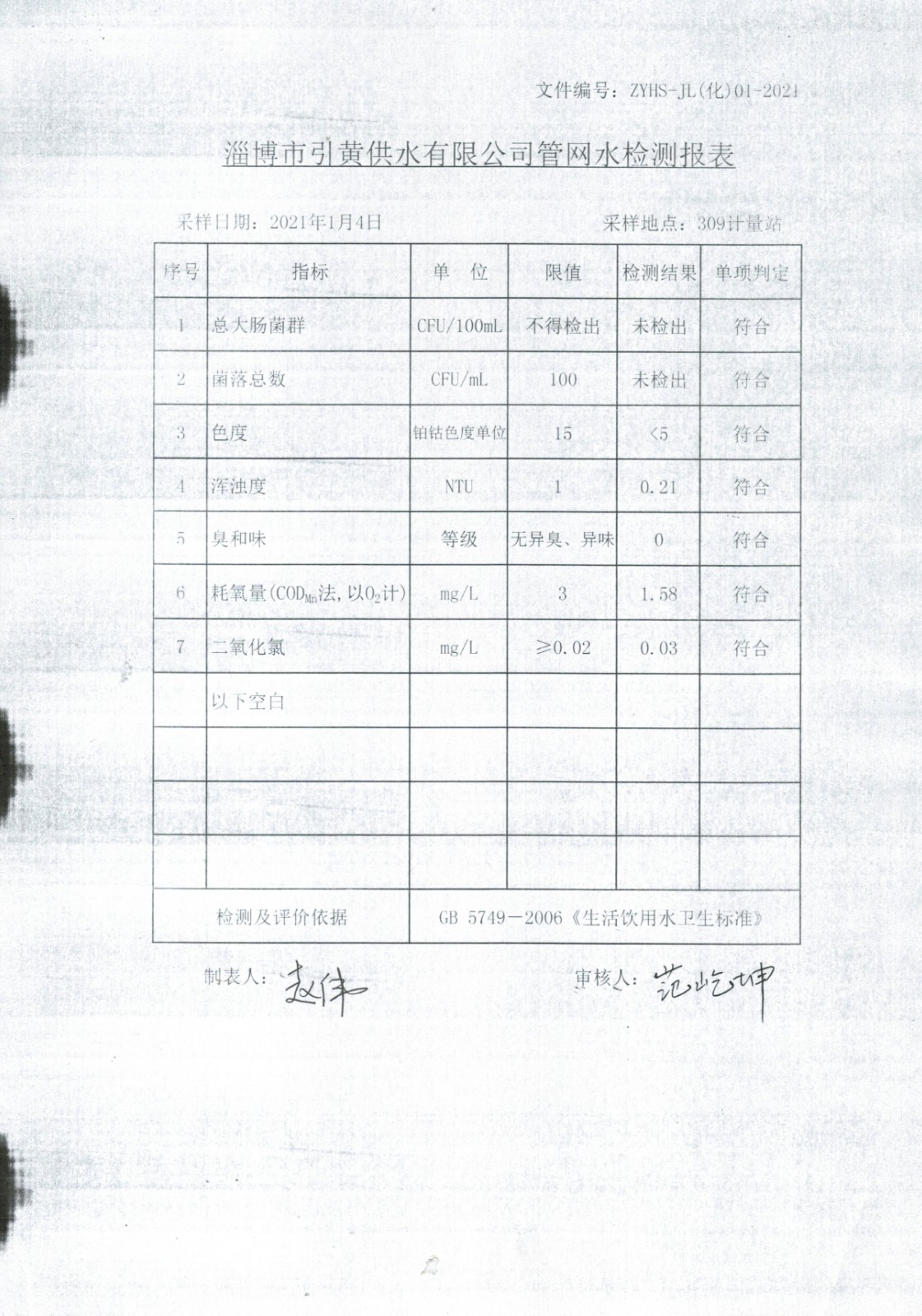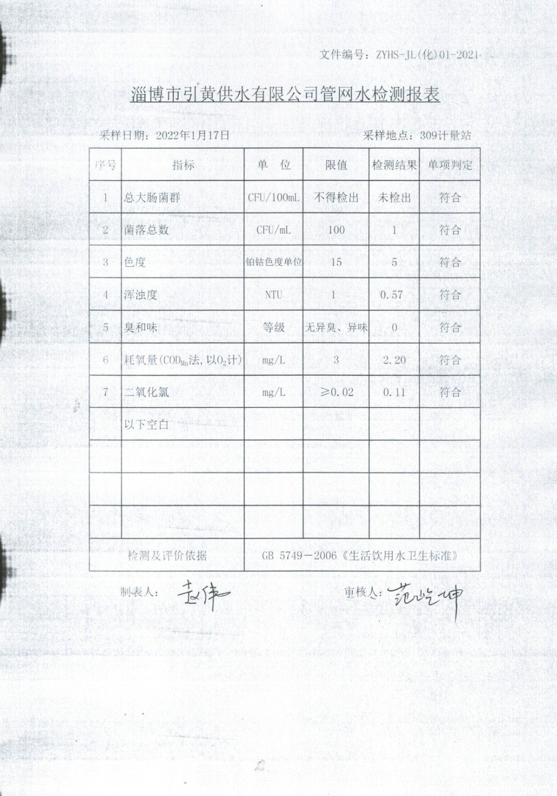 2022年1月水質(zhì)月檢公示 點(diǎn)擊數(shù):0次 發(fā)布時(shí)間:2022-02-08 17:00:55 生活飲用水-309計(jì)量站生活飲用水-配水廠生活飲用水-華電01月上管網(wǎng)水半月檢7項(xiàng)檢測(cè)匯總表01月下管網(wǎng)水半月檢7項(xiàng)檢測(cè)匯總表福林泵房灃水出廠水河西泵房南定出廠儷園小區(qū)世紀(jì)花園四砂生活區(qū)體育中心