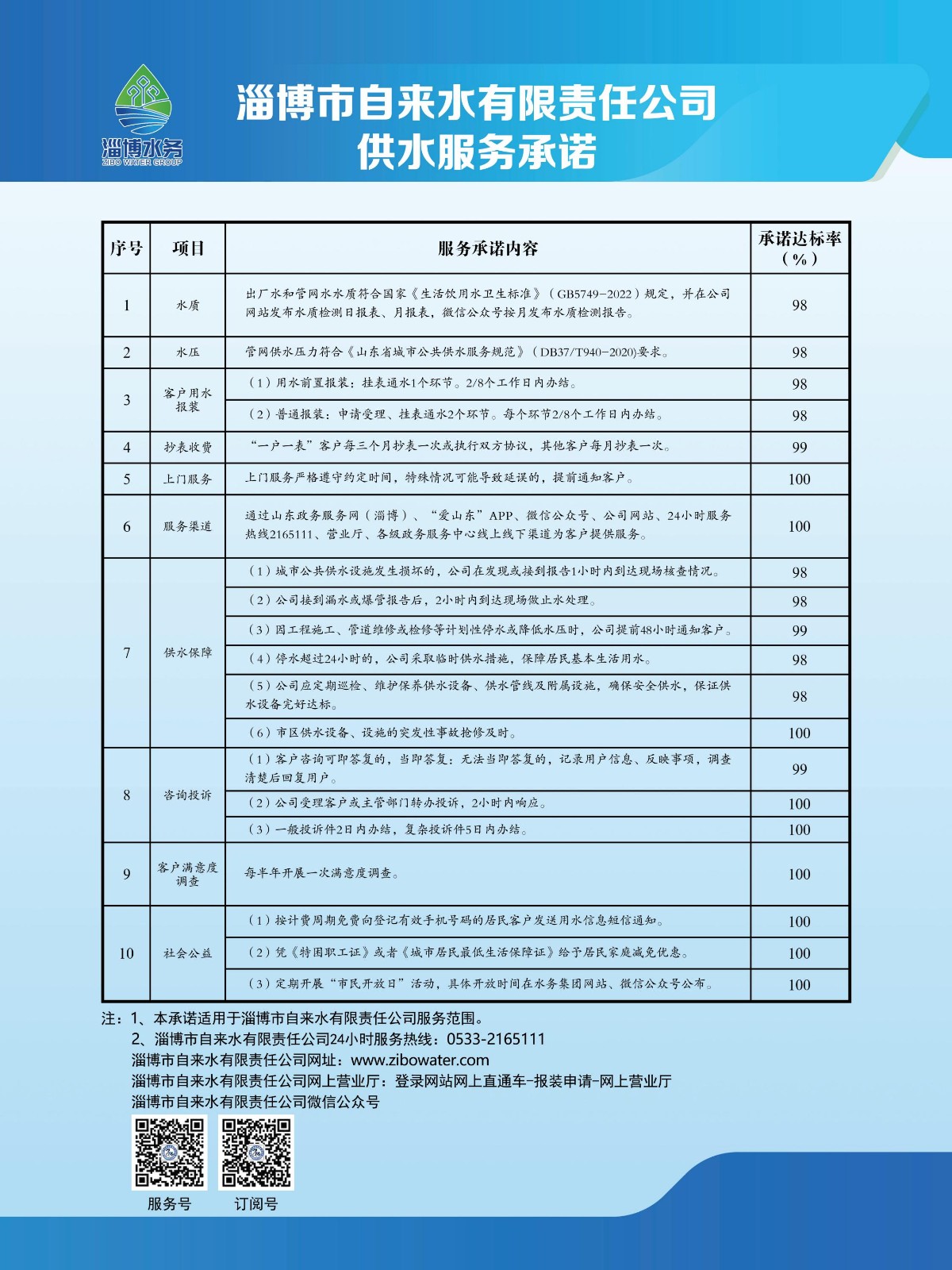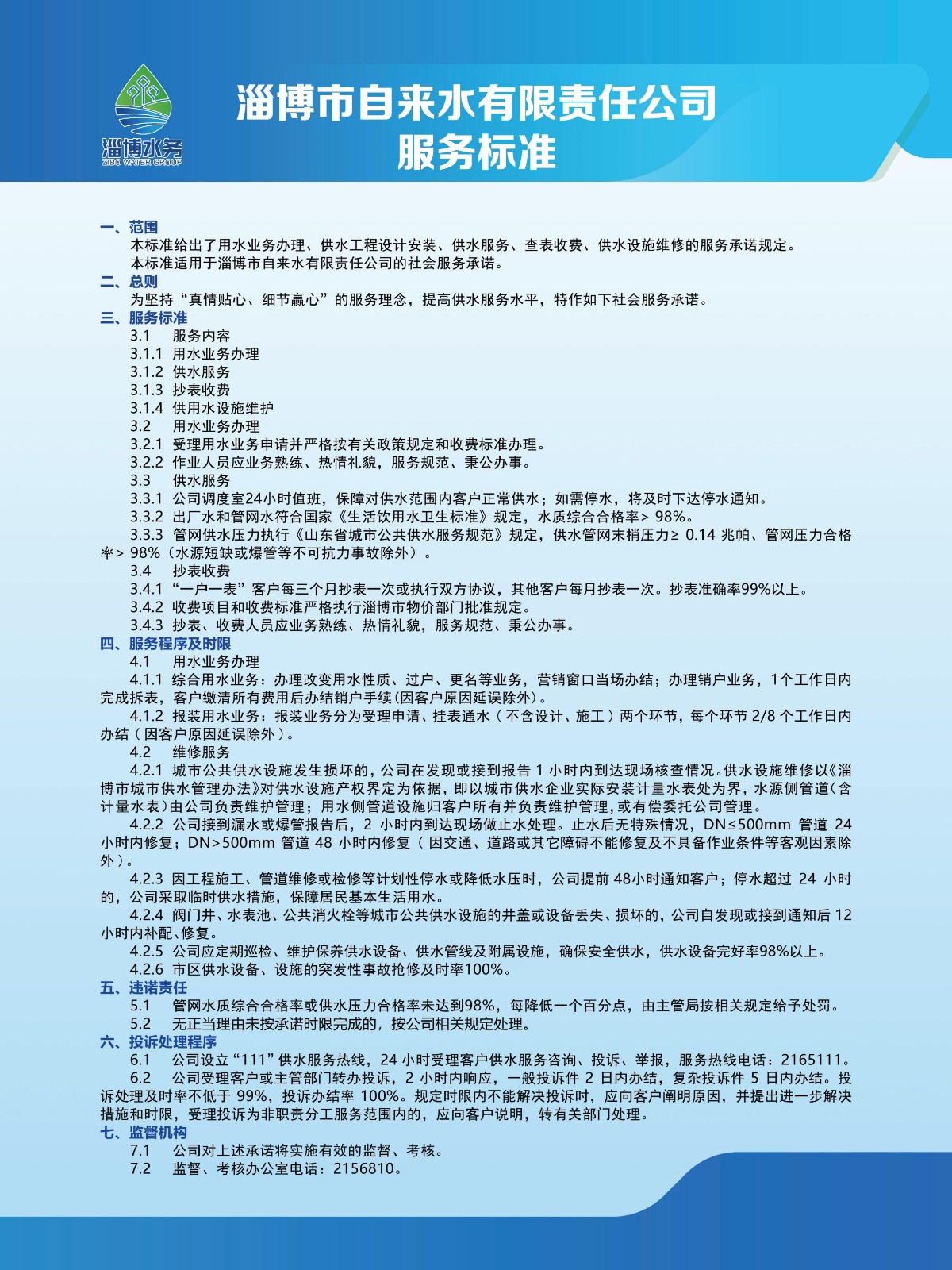淄博市自來水有限責(zé)任公司供水服務(wù)標(biāo)準(zhǔn)、服務(wù)承諾